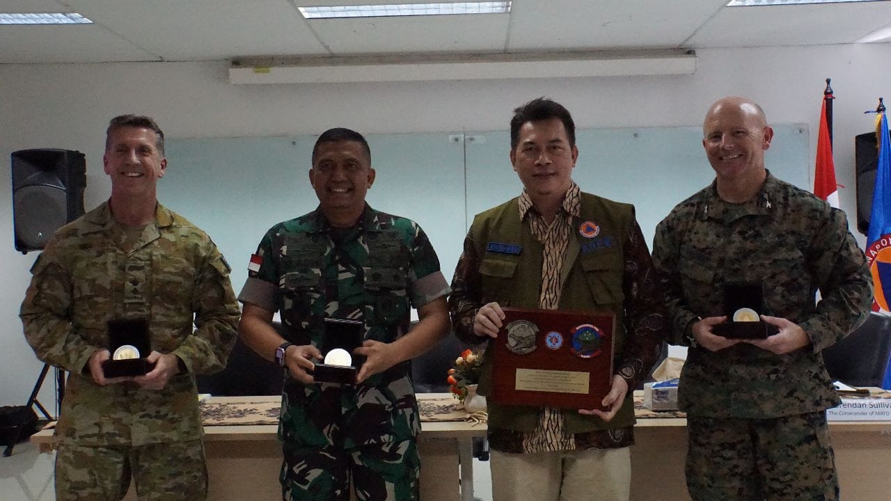 Turut hadir pada kegiatan penutupan fase akademik, Col. Brendan Sullivan, the Commander of Marine Rotational Force Darwin (MRFD), Lt.Col Scott Hill, the Commander Support and Response Team (SRT) 1 Div, bapak Kheriawan, Plt. Kapusdiklat Badan Nasional Penanggulangan Bencana (BNPB) serta 37 perwakilan peserta yang terdiri dari 10 personil TNI, delapan personil Australian Defence Force (ADF) dan 19 personil Marine Rotational Force Darwin (MRFD). kata Kabidpeninter Puspen TNI Kolonel Arm Suhendro Oktosatrio (Tim)