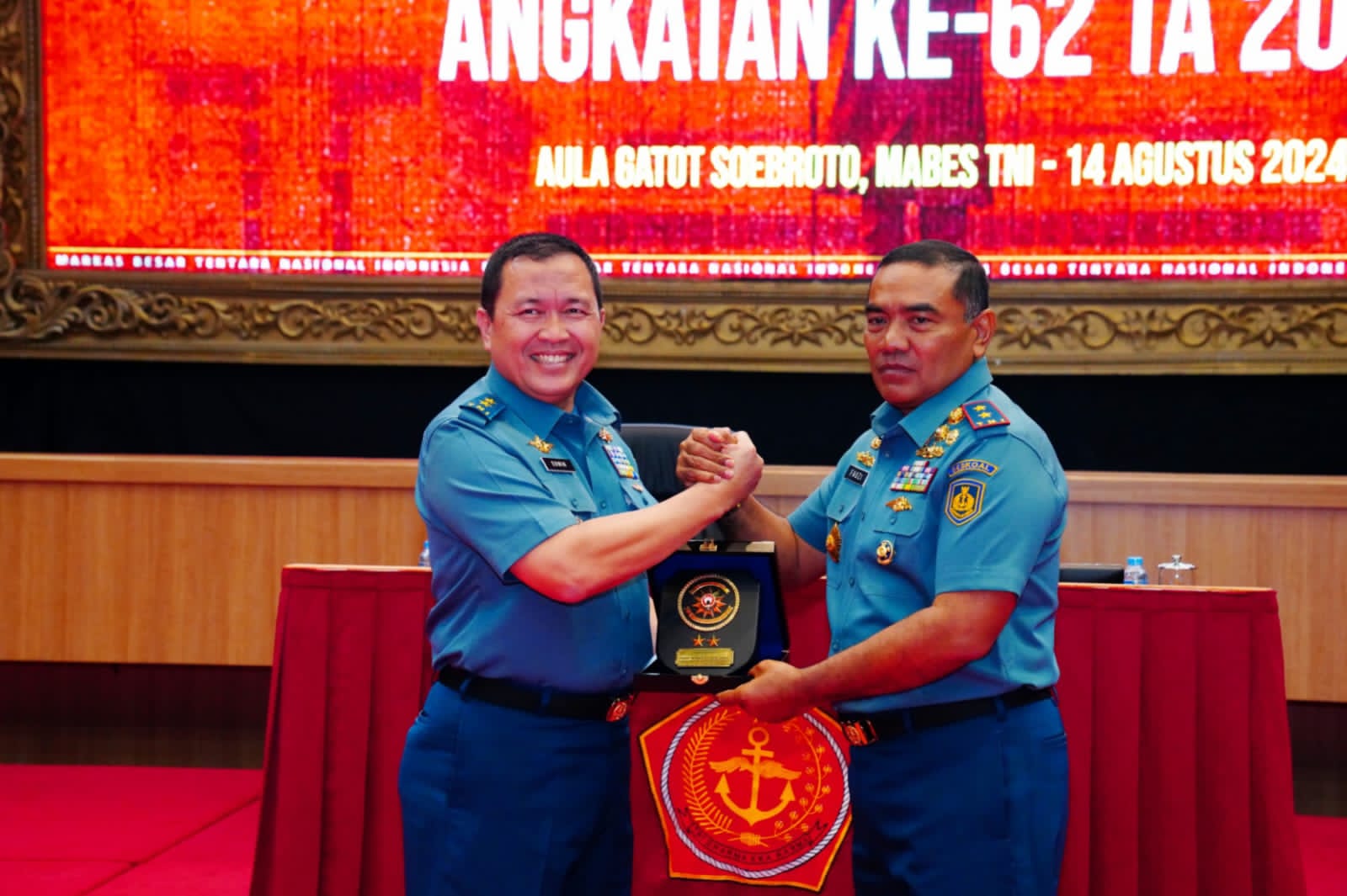 IPNews. Jakarta. Asisten Kebijakan Strategis dan Perencanaan Umum (Asrenum) Panglima TNI Laksda TNI Edwin, S.H., M.Han., M.H., menerima kunjungan Komandan Sekolah Staf Komando TNI AL (Danseskoal) Laksda TNI Fauzi, S.E., M.M., M.Tr.Opsla., M.Han., beserta Perwira Siswa (Pasis) Pendidikan Reguler (Dikreg) Seskoal Angkatan ke-62 dalam rangka Kuliah Kerja Renstra TA 2024, bertempat di Aula Gatot Soebroto Mabes TNI, Cilangkap, Jakarta Timur. Rabu (14/8/2024).