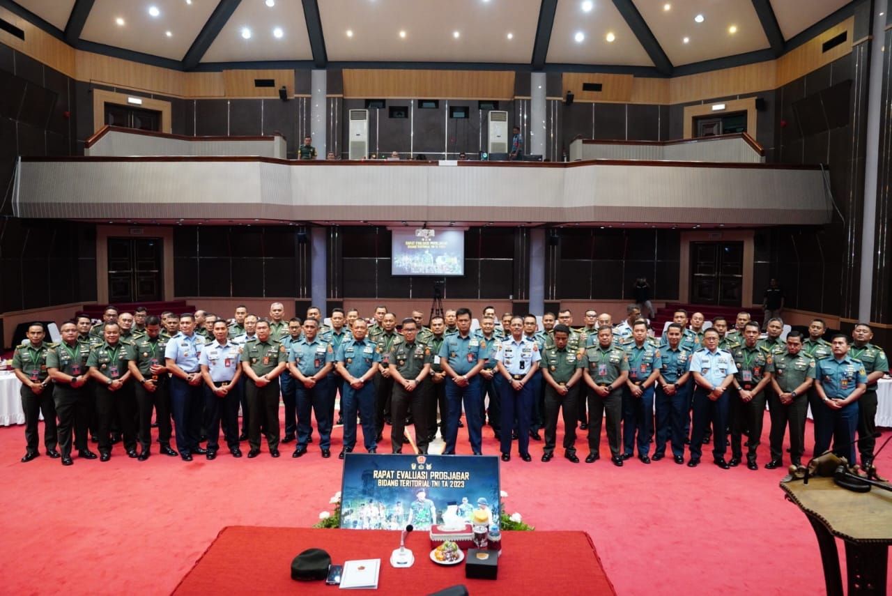 Hal ini ditegaskan oleh Asisten Teritorial Panglima TNI Mayjen TNI Mochamad Syafei Kasno, S.H., M.H., saat membuka Rapat Evaluasi Progjagar Bidang Teritorial Tahun Anggaran 2023 di Aula Gatot Soebroto Mabes TNI, Cilangkap, Jakarta Timur, Kamis (21/12/2023).