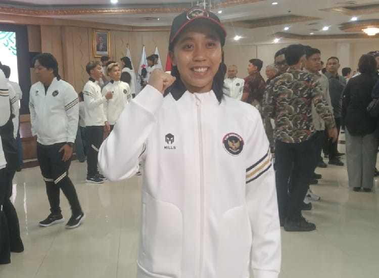 ” Target saya yang terbaik, kalau bisa merah medali,” ujar Absyah Ramadhani usai mengikuti acara pelepasan di Kemenpora, Jumat (17/10/2025)