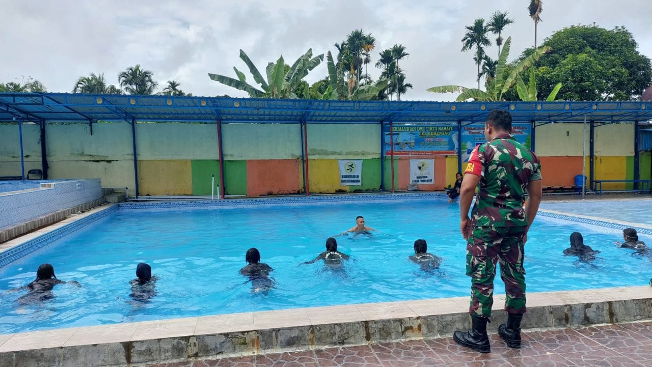 Hal inilah yang dilakukan juga oleh Babinsa Koramil 1710-02/Timika Sertu Tumpak Marpaung yang sedang melatih siswa-siswi SMA Taruna Timika bertempat di Kolam Renang Dwi Tirta Jaya, Kelurahan Kamoro Jaya, Distrik Wania, Kabupaten Mimika, Sabtu (17/06/2023).