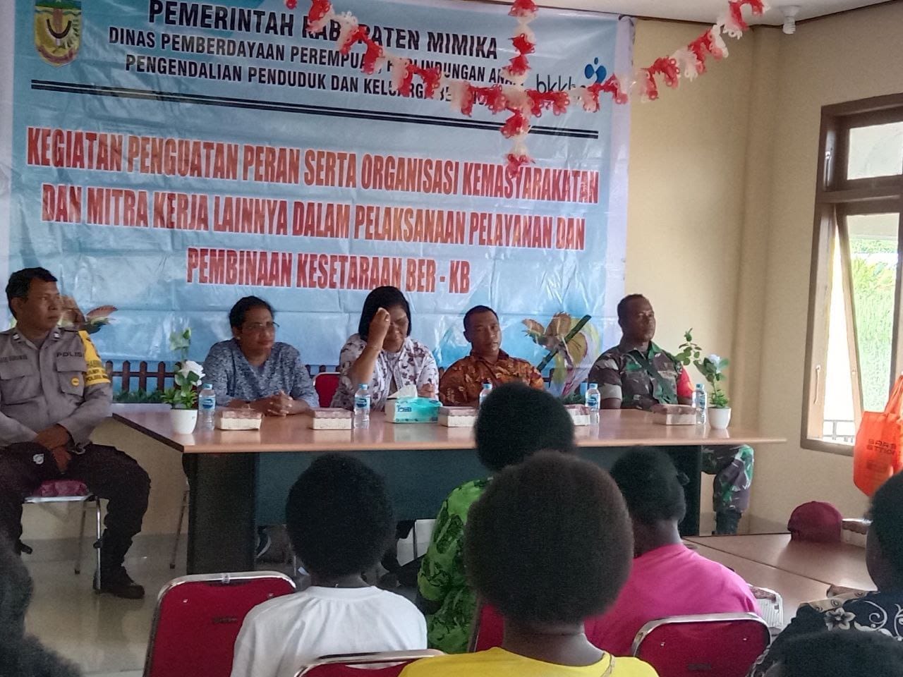 IPNews. Timika. Mencapai kesejahteraan keluarga dan masyarakat, Koramil 1710-07/Kokonao, laksanakan pendampingan bekerjasama dengan Dinas Pemberdayaan Perempuan dan Perlindungan Anak menggelar kegiatan penguatan peran serta organisasi kemasyarakatan dan mitra kerja lainnya, dalam pelaksanaan dan pembinaan kesetaraan ber-KB, Rabu,(16/11/2022),di Gedung Serbaguna Kantor Distrik Mimika Barat, Kabupaten Mimika.