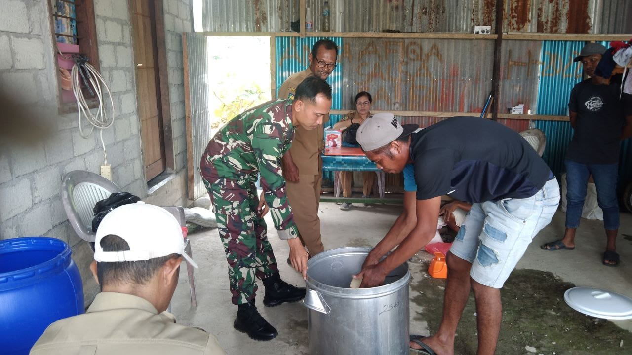 IPNews. Timika. Bintara Pembina Desa (Babinsa) Koramil 1710-07/Mapurujaya Sertu Tangkas Budiono melaksanakan pendampingan Dinas Pertanian Kab. Mimika dalam pelatihan cara pembuatan obat hama dan pupuk dengan menggunakan bahan-bahan yang ada di sekitar untuk dibuat presentasi kepada para petani Kp. Muare Distrik Mimika Timur, Kabupaten Mimika, Senin (13/11/2023).