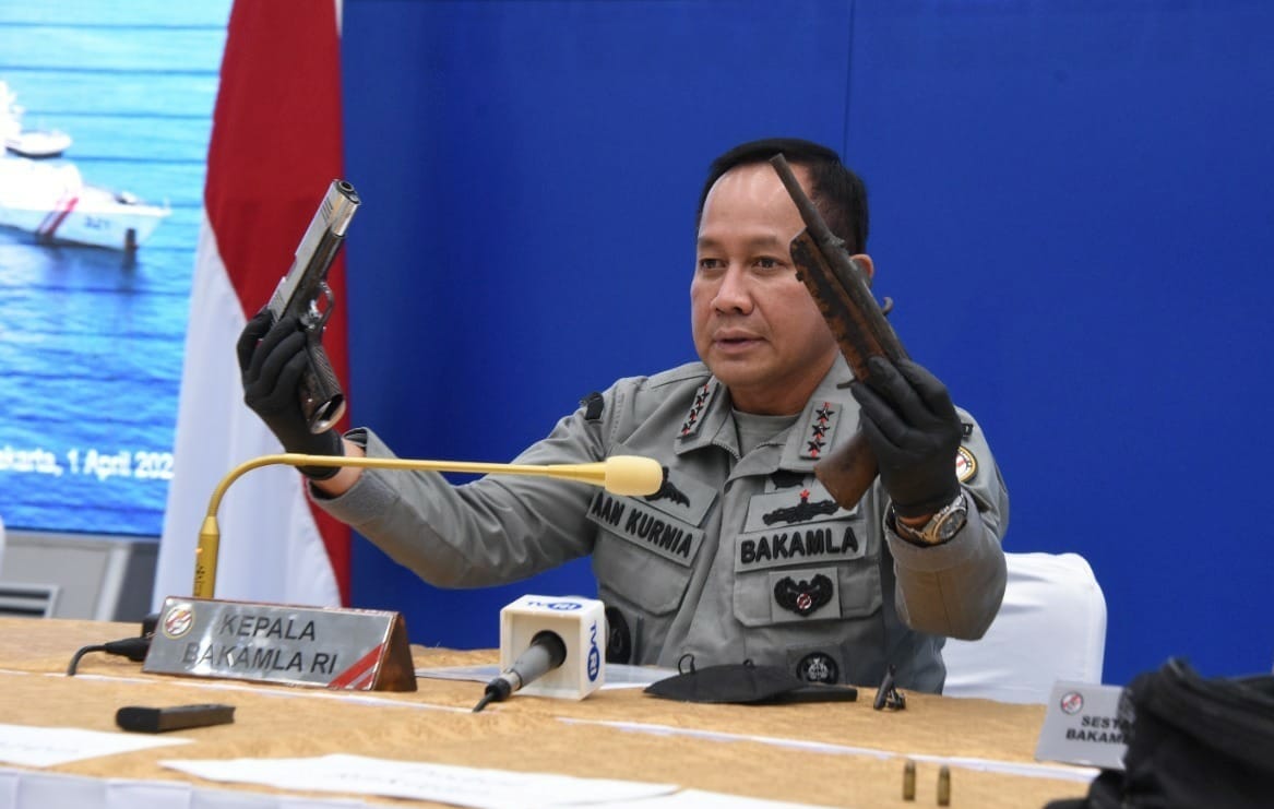 Hal tersebut dikatakan oleh Kepala Bakamla RI Laksdya TNI Dr. Aan Kurnia saat melakukan konferensi pers di Aula Mabes Bakamla RI, Jalan Proklamasi No. 56, Menteng, Jakarta Pusat, Jumat (1/4/2022).