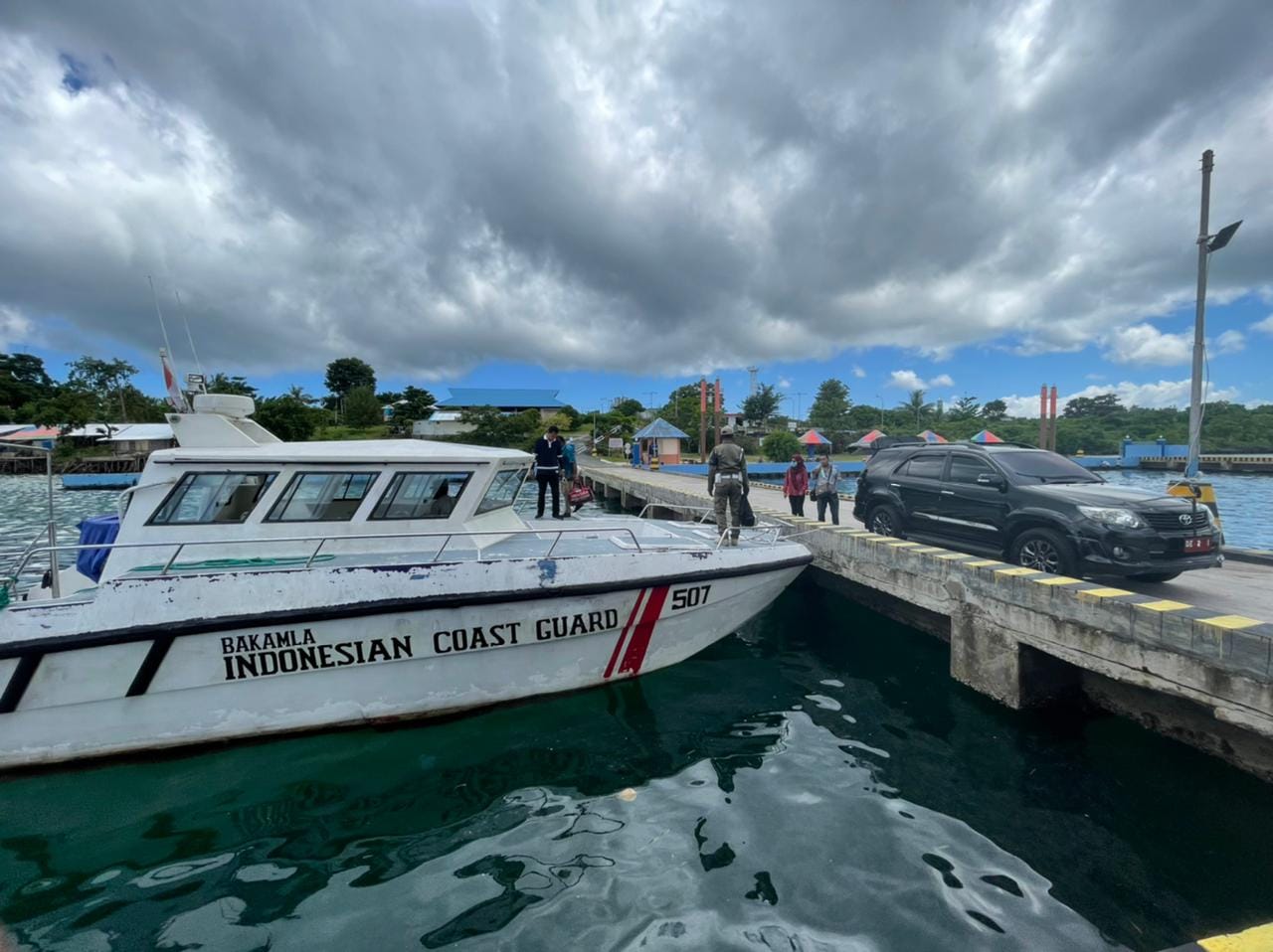 Kepala SPKKL Tual Letkol Bakamla Rizal Ufer Suat turut serta mendampingi Wakil Walikota Tual Usman Tamnge, S.E., onboard di Catamaran 5-07.