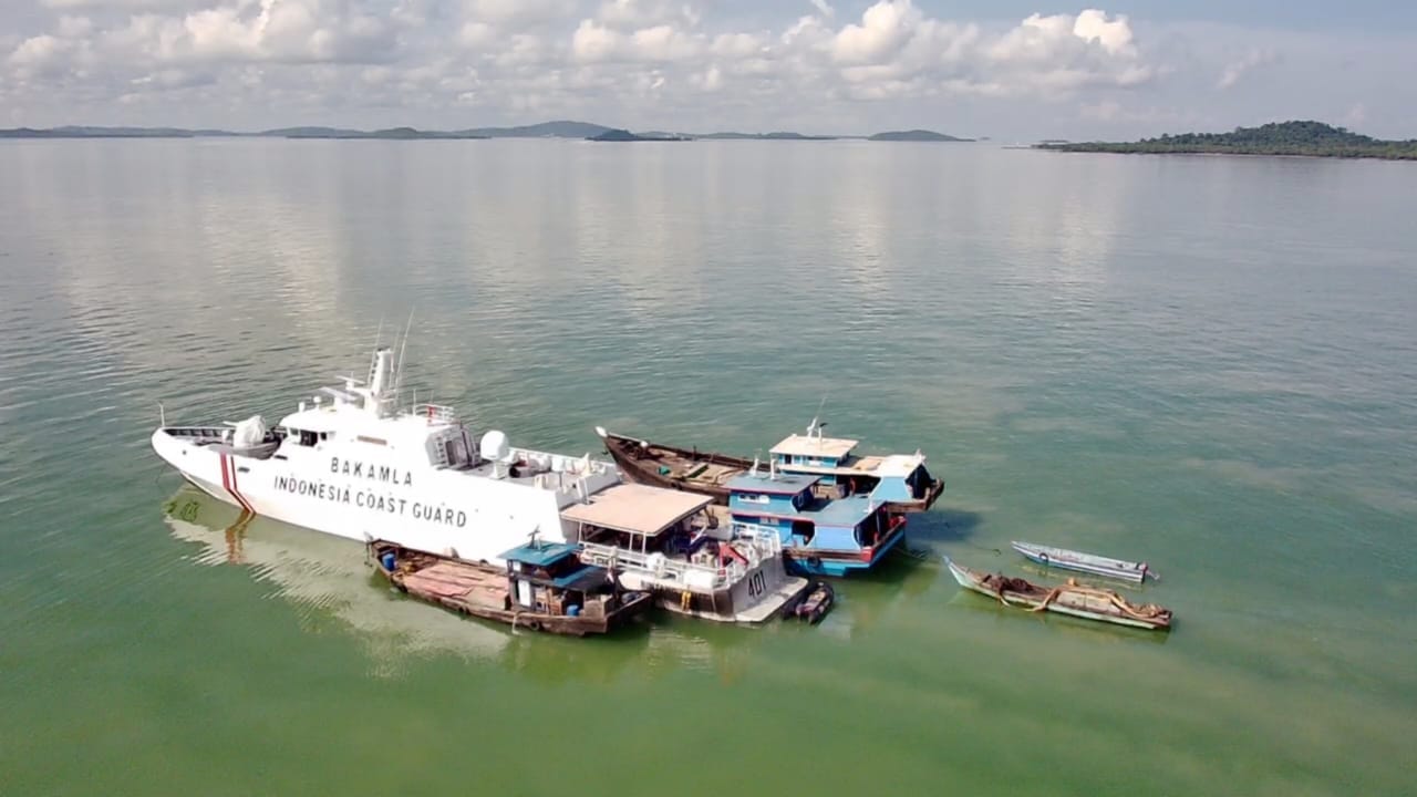 Pranata Humas Ahli Muda Bakamla RI Kapten Bakamla Yuhanes Antara, S.Pd. dalam keterangan tertulisnya (28/6) mengungkapkan, “Kronologinya, sekitar pukul 08.30 WIB, KN Bintang Laut-401 yang sedang melaksanakan patroli, mendapatkan kontak radar dengan jarak 0.8 NM pada posisi 00°58′ 315″ N – 103°22 ‘464” E. Menanggapi hal tersebut, ABK KN Bintang Laut-401 memantau menggunakan teropong, dan terlihat visual kapal KM Nurul Yakin Baru, KM HARY, dan KM Cinta Damai sedang melaksanakan aktifitas penambangan pasir.
