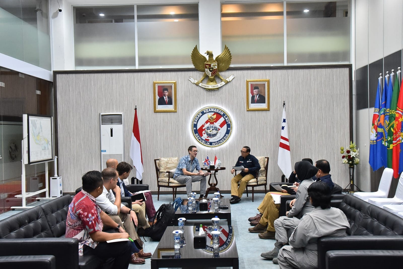 Dalam pertemuan ini, Sestama Bakamla RI didampingi oleh Laksda Bakamla Deputi Bidang Kebijakan dan Strategi Gregorius Agung W.D., M.Tr. (Han) dan Deputi Bidang Informasi, Hukum, dan Kerjasama Dr. Samuel H. Kowaas, M.Sc., CSBA.