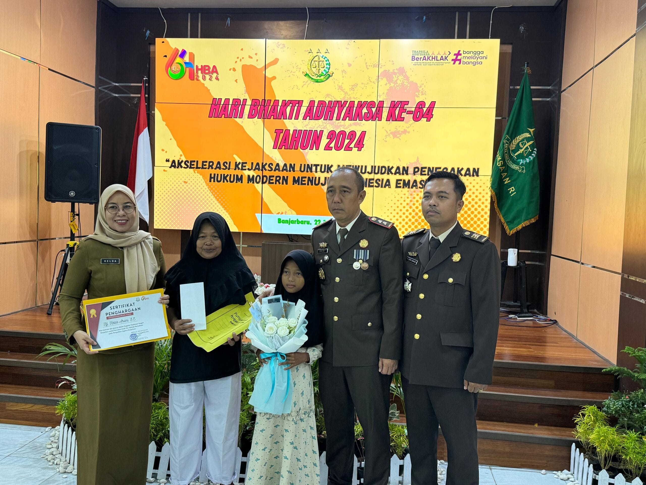 Jaksa Jefri pun mengapresiasi putusan majelis hakim Pengadilan Agama Banjarbaru. Sebab saat Kejaksaan RI merayakan Hari Bhakti Adhyaksa, Kejari Banjarbaru berhasil memenangkan gugatan hak asuh atas orangtua kandung atas nama Nur Adinda Ramadhani.