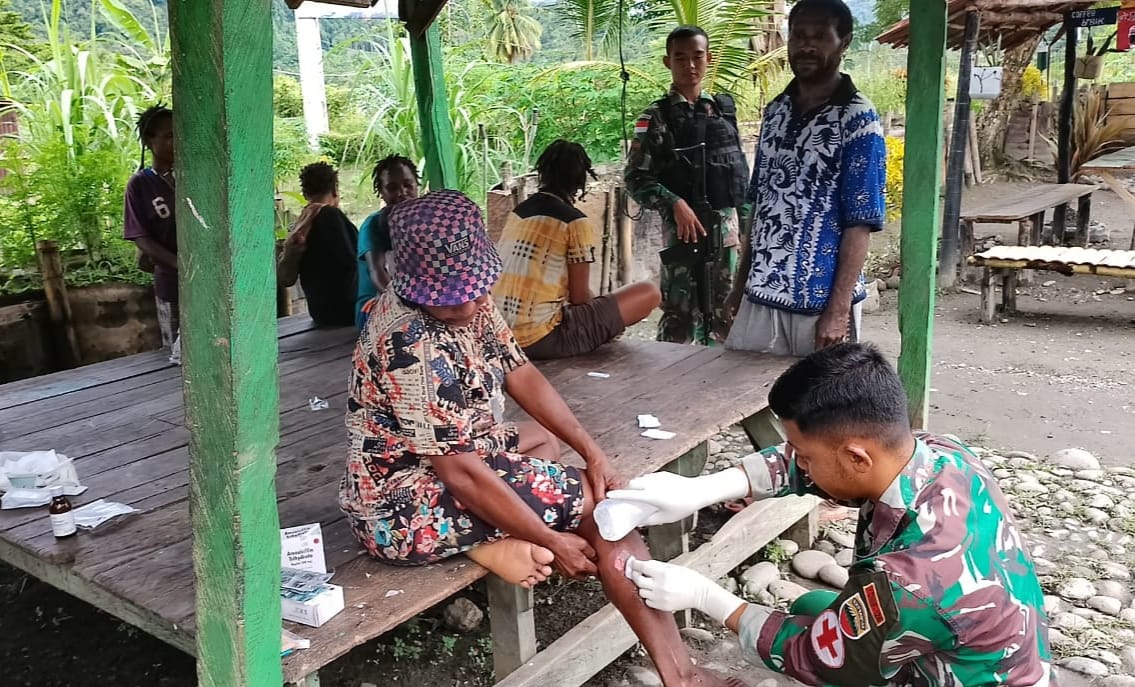 IPNews Keerom. Kondisi cuaca di perbatasan yang tidak menentu saat ini, membuat banyak warga di perbatasan mengalami berbagai macam penyakit. Merespon keluhan warga tersebut, Tenaga Kesehatan Satgas Yonif 126/KC giat memberikan pelayanan kesehatan secara gratis dengan berkeliling kampung dan mendatangi rumah-rumah warga guna menjaga ketahanan kesehatan masyarakat Kampung Batom II, Distrik Batom, Kabupaten Pegunungan Bintang.