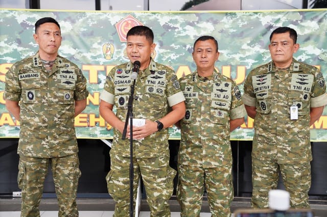 IPNews. Jakarta. Wakil Kepala Pusat Penerangan TNI Brigjen TNI Osmar Silalahi, didampingi Sekretaris Dispenad Kolonel Inf Heri Bambang Wahyudi, Kasubdispenum Dispenal Kolonel Laut (P) Bambang Budi Raharjo, dan Kasubdispenum Dispenau Kolonel Pnb Didik Setiya Nugroho, menyampaikan perkembangan terbaru pelibatan TNI dalam operasi penanggulangan bencana di Provinsi Aceh, Sumatera Utara, dan Sumatera Barat. Keterangan pers disampaikan di Lanud Halim Perdanakusuma, Jakarta Timur, Selasa (9/12/2025).
