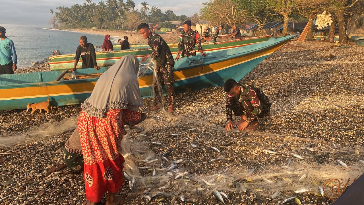 IPNews. Ambon. Kepedulian sosial terus ditunjukkan Satgas Satuan Organik Yonarmed 1 Kostrad di daerah penugasan, seperti yang dilakukan anggota Pos Ramil Wamsisi saat melaksanakan Komunikasi Sosial (Komsos) sekaligus membantu para nelayan Desa Waelikut, Kabupaten Buru Selatan, menyiapkan sarana dan prasarana untuk melaut.