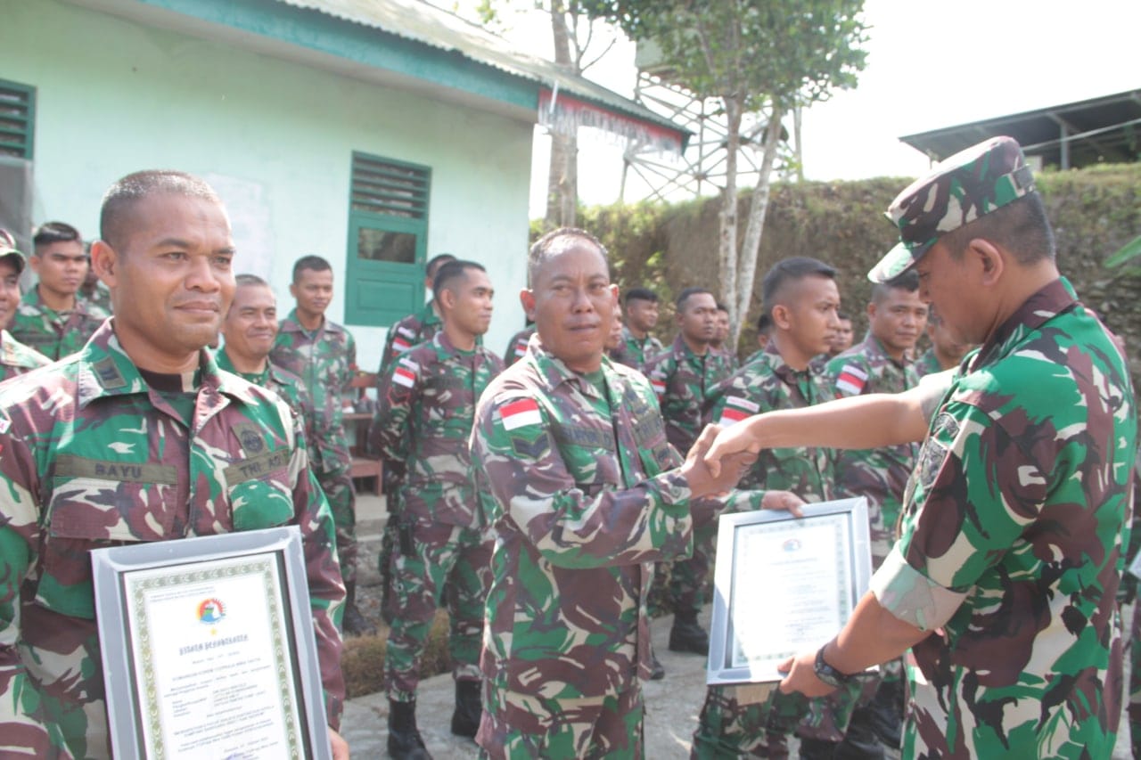 Penghargaan diberikan secara simbolis bertempat di Pos Waris Satgas Yonif 126/KC, Kampung Banda, Distrik Waris, Kab. Keerom, Papua, Kamis (13/10/2022). Dan disaksikan oleh Kepala Kampung dan Tokoh Masyarakat Kampung Banda.