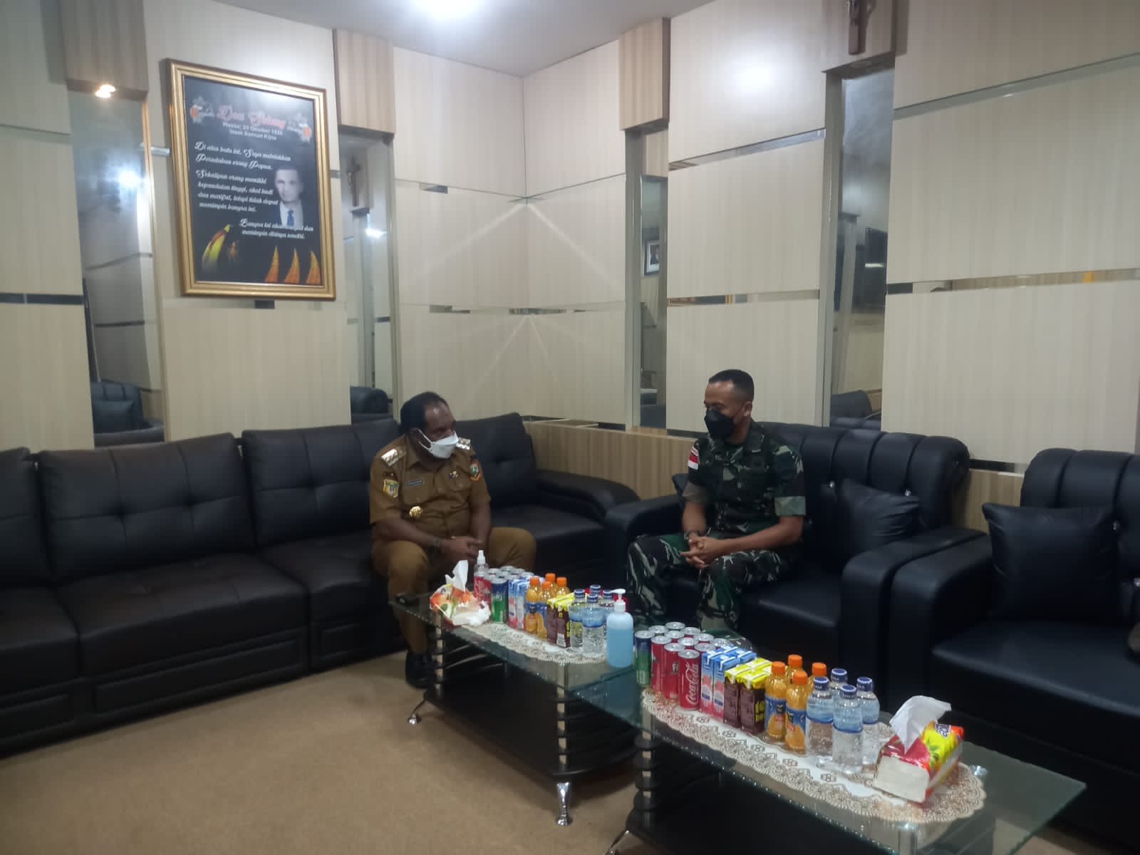 IPNews. Keerom. Dansatgas Yonif 126/KC, Letkol Inf Dwi Widodo SH. M.Han, melaksanakan kunjungan perdananya ke kantor Bupati Kabupaten Keerom menjalin tali silaturahmi dan mengintegrasikan program Pemerintah Daerah dengan Satgas.