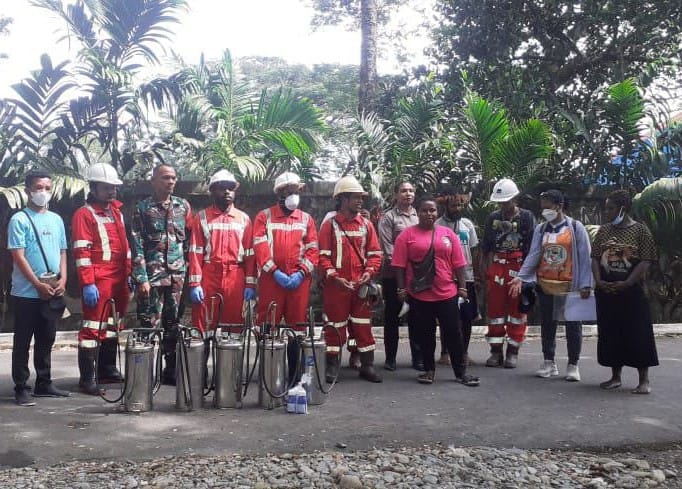 IPNews. Timika. Demam Berdarah Dengue (DBD) merupakan salah satu penyakit disebabkan oleh gigitan nyamuk yang dapat dicegah melalui pengendalian vektor dengan kimiawi, pengelolaan lingkungan, pengendalian hayati dan pemberantasan vektor secara genetik. Selaku aparat kewilayahan dalam upaya membantu mencegah penyebaran DBD di wilayah binaan. Serka Jufentino selaku Babinsa Koramil 1710-03/Kuala Kencana melalui giat Binternya kali ini membantu Puskesmas setempat melaksanakan pencegahan dengan metode Indoor Residual Sprying (IRS) ke rumah warga Kp. Jimbi, Distrik Kuala Kencana, Kabupaten Mimika, Kamis (08/02/2024).