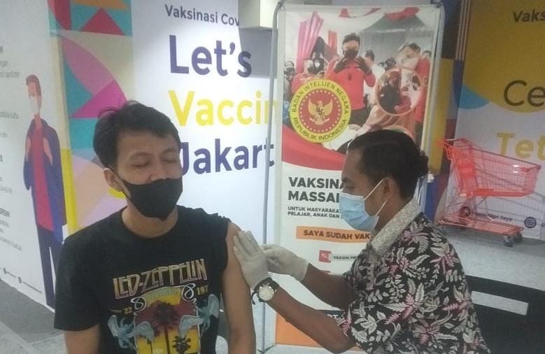 Antusias Warga yang datang secara bergelombang di sentra Vaksinasi Serentak kolaborasi Badan Intelijen Daerah (BINDA) dan Dinas Kesehatan (DINKES) Provinsi DKI Jakarta. Sentra Vaksinasi Serentak Plaza Slipi Jaya ini, lokasi tepatnya berada di Plaza Slipi Jaya (Slipi Jaya) Jalan, Letjen S. Parman, Kemanggisan, Palmerah, Jakarta Barat.