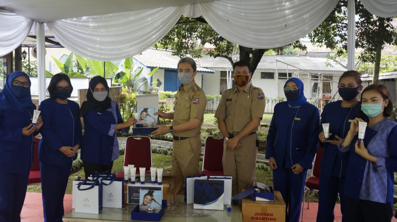 Indoposnews, Bogor, – Bersama lawan Covid – 19, Inez Kosmetik Jakarta memberikan bantuan berupa 500 gel hand sanitizer kepada Pemerintah Kota (Pemkot) Bogor, di Taman Belakang Rumah Dinas Walikota Bogor, Jl Pajajaran Kota Bogor, Senin (18/5/2020).