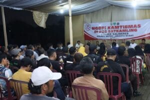 IPNews. Jakarta. Upaya mencegah gangguan keamanan dan ketertiban masyarakat saat Pilkada 2024, Polda Metro Jaya menggelar Ngopi Kamtibmas di Pos Satkamling Rw 008 8 Kel. Kalideres, Kec. Kalideres Jakarta Barat. Rabu (25/9/2024) malam.