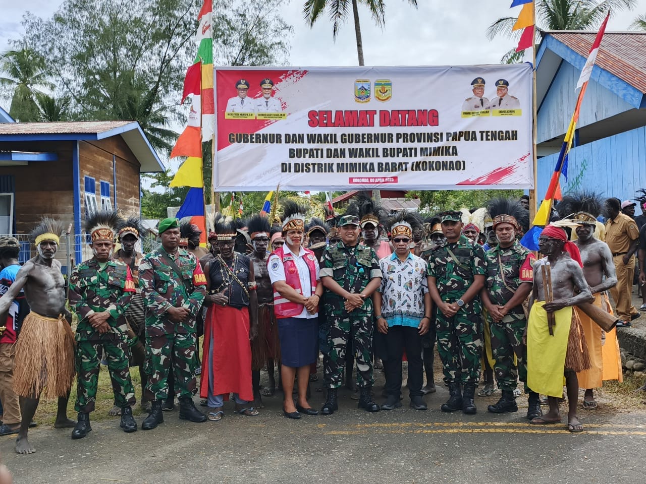 IPNews. Timika. Komandan Komando Distrik Militer (Dandim) 1710/Mimika Letkol Inf M. Slamet Wijaya, S.Sos, M.Han, M.A mendampingi Gubernur Papua Tengah bapak Fritz Nawipa, S.H dalam kunjungan kerja (kunker) ke wilayah Distrik Mimika Barat Kab. Mimika, Kamis (10/04/2025).
