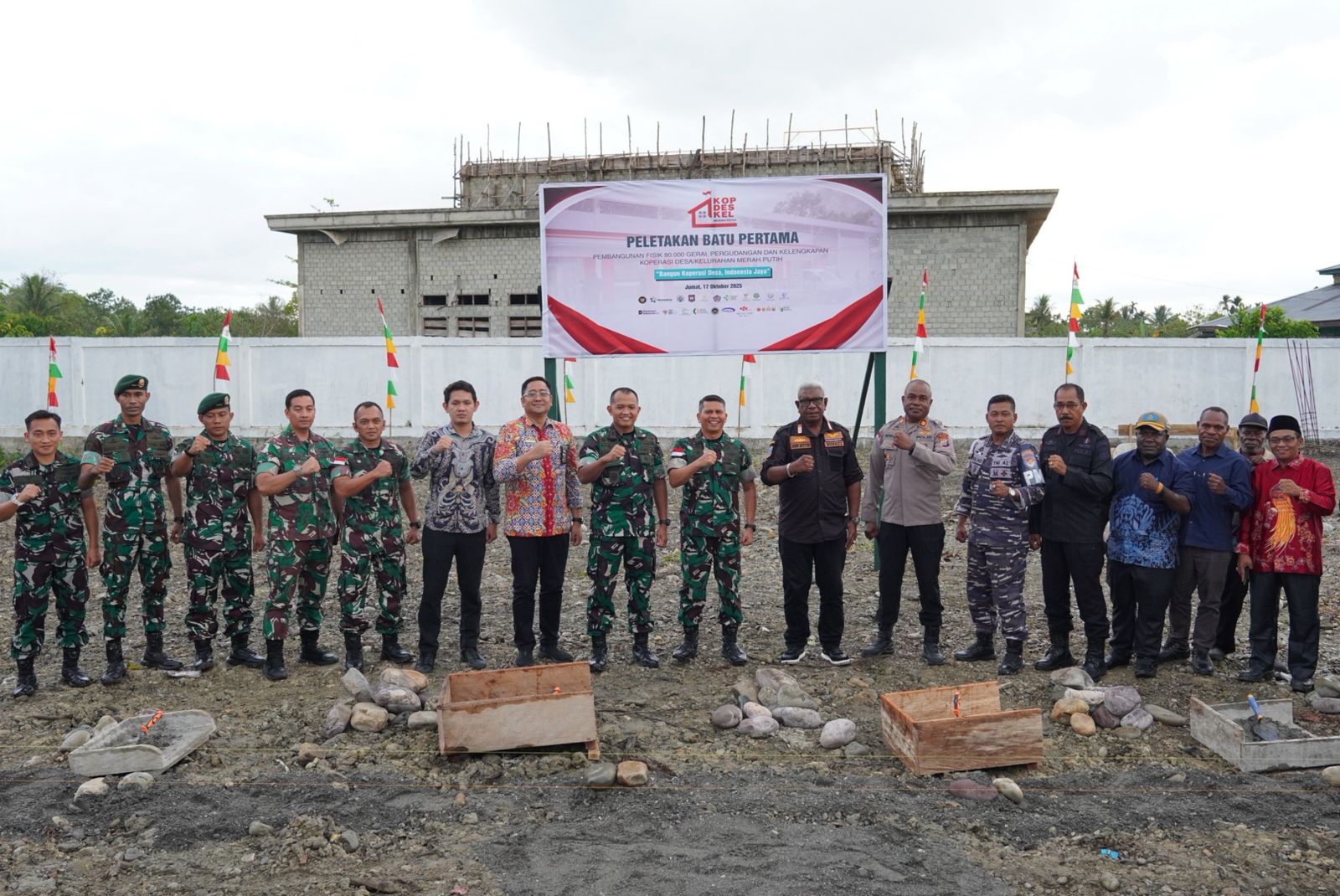Rangkaian acara diawali dengan vidcon serentak bersama Menteri Koperasi yang memberikan arahan dan motivasi kepada seluruh peserta di berbagai daerah. Setelah itu, kegiatan dilanjutkan dengan prosesi peletakan batu pertama secara simbolis oleh Kasdam XVII/Cenderawasih dan Forkopimda Kab. Mimika sebagai tanda dimulainya pembangunan kantor koperasi dan fasilitas pendukung lainnya di Kampung Limau Asri Timur. (Pen/Tim)