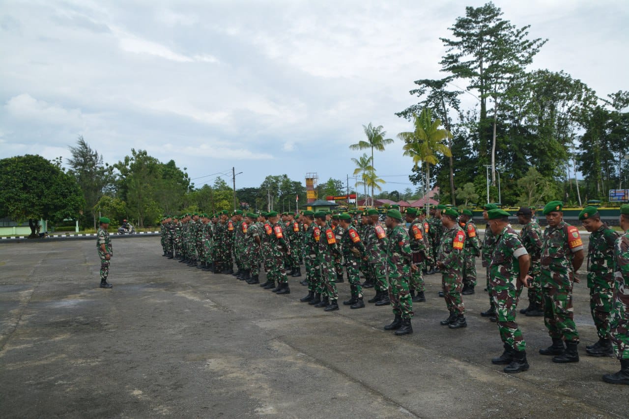 IPNews. Timika. Komandan Kodim 1710/Mimika Letkol Inf Dedy Dwi Cahyadi memimpin apel pagi personel dan PNS Kodim, bertempat Lapangan Upacara Makodim 1710/Mimika, Jl. Agimuga Mile 32, Distrik Kuala Kencana, Kab. Mimika, Jumat (23/02/2024).