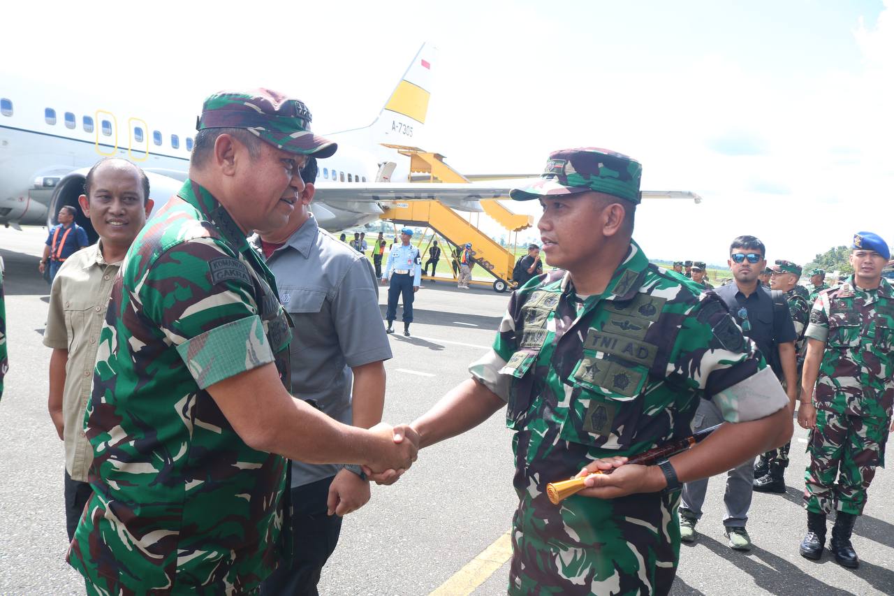 IPNews. Timika. Dandim 1710/Mimika Letkol Inf M. Slamet Wijaya, S.Sos., M.Han. MA. menyambut kedatangan Kepala Staf TNI Angkatan Darat (Kasad) Jenderal TNI Maruli Simanjuntak, M. Sc. beserta rombongan, dalam rangka kunjungan kerja di wilayah Kabupaten Mimika, Selasa (12/11/2024)