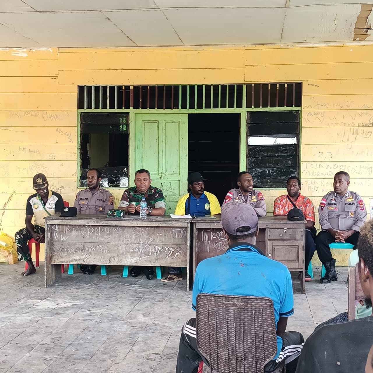 IPNews. Timika. Danposramil Potowaiburu Pelda Markusdiyanto melalui kegiatan Binternya menghadiri rapat koordinasi rencana pengamanan pemasangan jaringan Internet melalui program Badan Aksesibilitas Telekomunikasi dan Informasi (Bakti) Aksi di Kp. Potowaiburu, Distrik Mimika Barat Jauh, Kabupaten Mimika, Selasa (20/06/2023).
