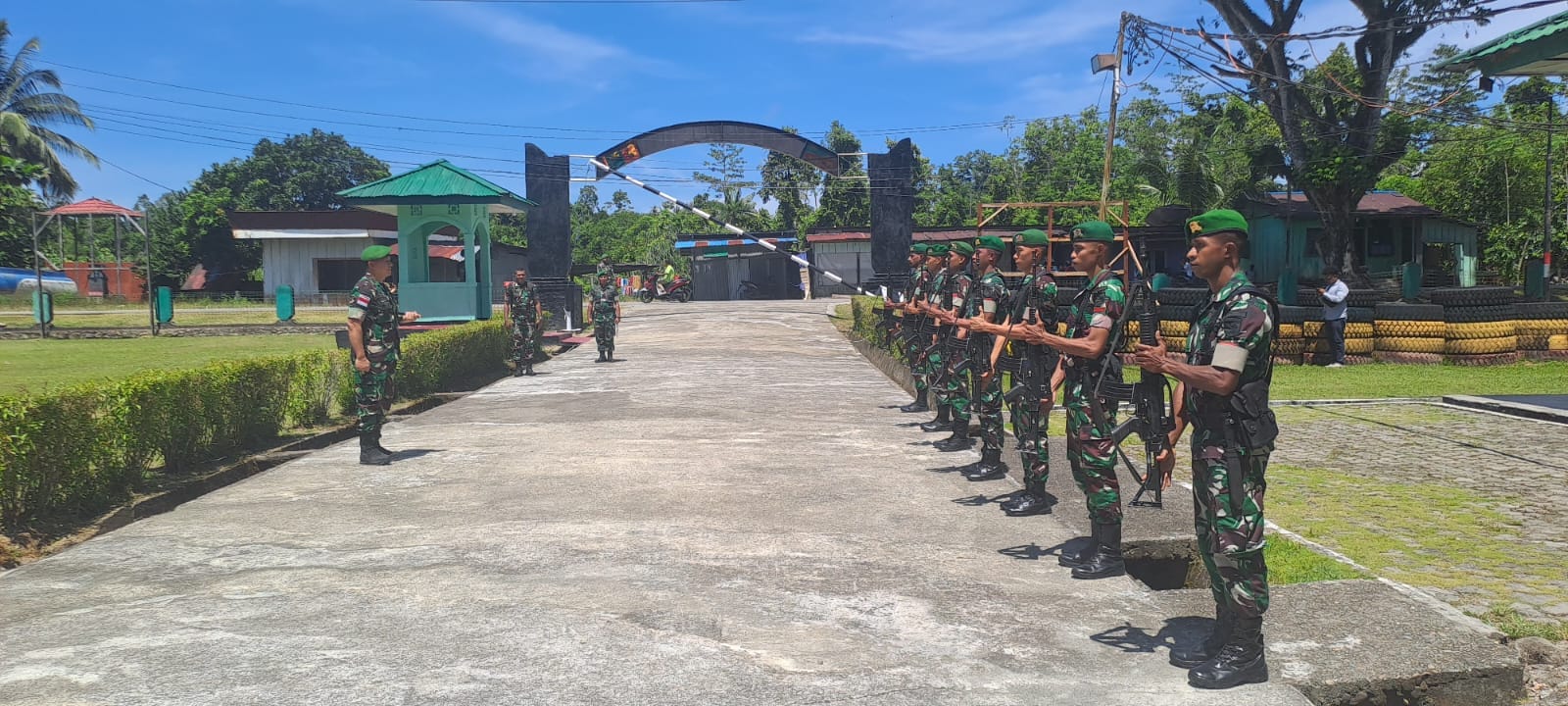 Usai memeberikan pengarahan kepada personel Yonif 757/Ghupta Vira, Danrem 174/ATW yang didampinggi oleh Danki A melaksanakan peninjauan pangkalan di Komplek Asrama Kompi Senapan A. (Penrem/Tim)