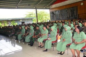 IPNews. Merauke. Danrem 174/Anim Ti Waninggap Brigjen TNI Agus Widodo, S.I.P., M.Si., di dampingi Ketua Persit KCK Koorcab Rem 174, Ny. Ane Agus Widodo melaksanakan tatap muka dengan seluruh Prajurit dan Persit Koorcabrem 174 dalam rangka Jam Komandan, bertempat di Aula L.B Moerdani Makorem 174/ATW, Jalan Poros Tanah Miring, Kampung Kamangi, Distrik Tanah Miring, Kabupaten Merauke, Kamis (2/3/2023).