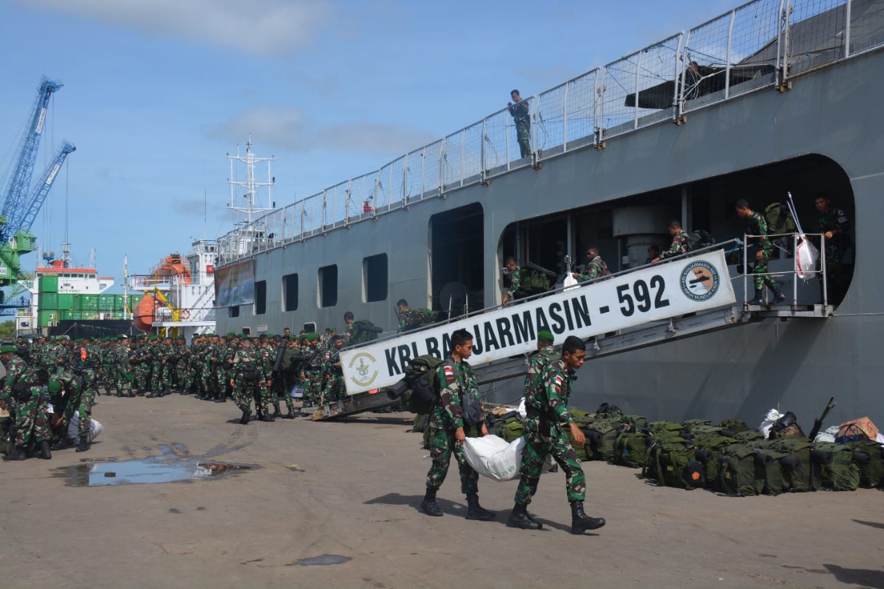 Sebanyak 900 personel Satgas Pamtas RI-PNG tiba di Pelabuhan Yos Sudarso Merauke menggunakan KRI Banjarmasin nomor lambung 592. Dalam upacara penerimaan, Satgas Pamtas RI-PNG Sektor Selatan Yonif 511/DY menggantikan Yonif 123/Rajawali di wilayah Kabupaten Merauke dan Yonif 725/WRG menggantikan Yonif 410/Alugoro di wilayah Kabupaten Boven Digoel, Papua Selatan.