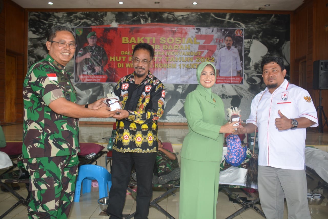 Hal ini dilakukan pada kegiatan Bakti Sosial Donor Darah oleh Staf Teritorial Korem 174/ATW selaku penyelenggara yang dikoordinir langsung Kepala Seksi Teritorial Korem 174/ATW Letkol Inf Lambert J. Mailoa, dalam rangka memperingati HUT Kemerdekaan RI ke-77 bekerjasama dengan Palang Merah Indonesia Kabupaten Merauke, bertempat di Aula L.B Moerdani Makorem 174/ATW Jalan Poros L.B Moerdani Distrik Tanah Miring, Kab. Merauke, Papua Selatan, Senin (15/8/2022).