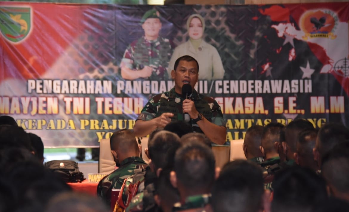 Dalam kesempatan tersebut, Pangdam XVII/Cenderawasih Mayjen TNI Teguh Muji Angkasa selain menyerahkan bingkisan juga memberikan pengarahan kepada Prajurit Satgas Pamtas RI-PNG Yonif 123/Rajawali.