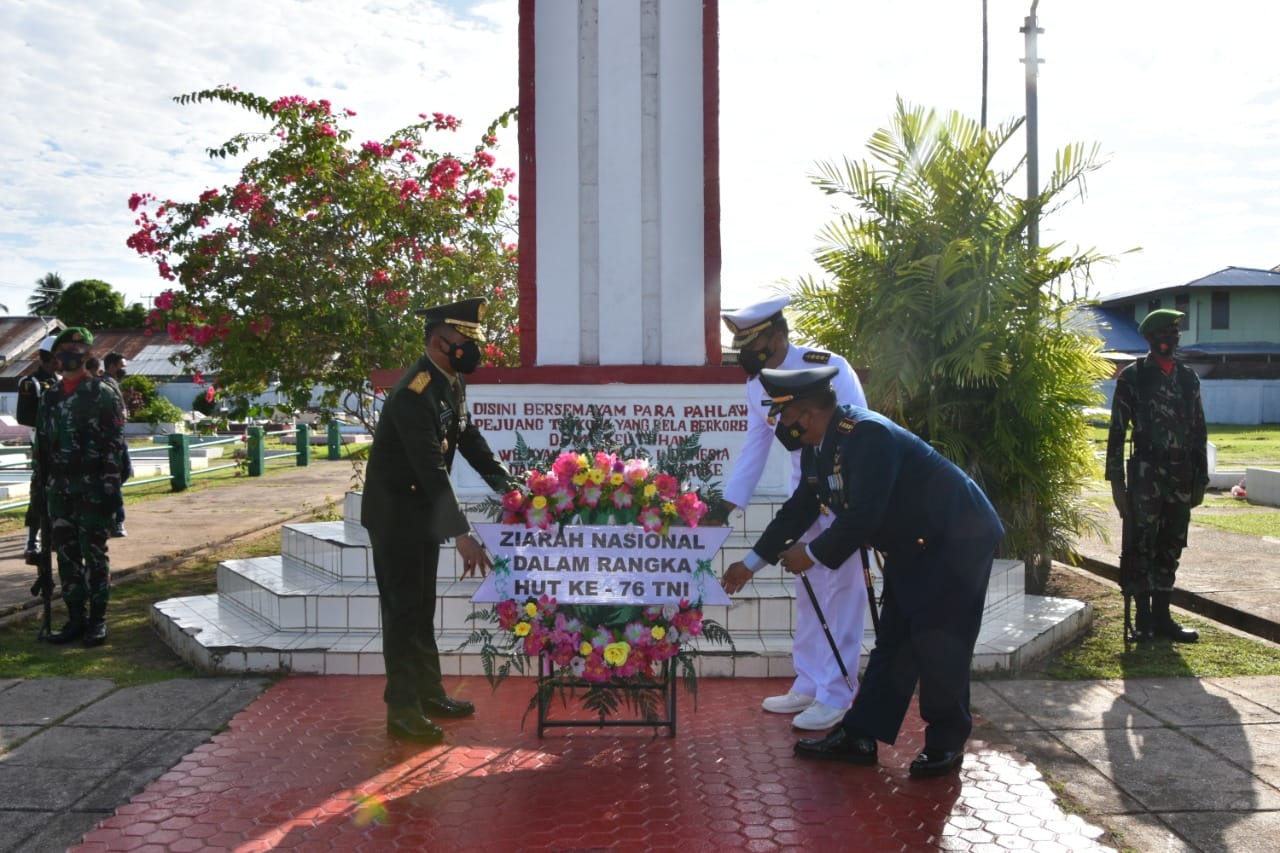 IPNews. Merauke. Danrem 174 Merauke Brigjen TNI Bangun Nawoko memimpin langsung upacara Ziarah Nasional dalam rangka memperingati HUT Ke-76 TNI Tahun 2021, di Taman Makam Pahlawan Trikora, Kabupaten Merauke, Papua, Senin (4/10/2021).
