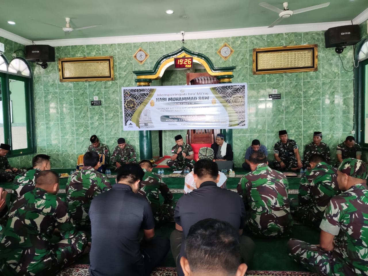 IPNews. Timika. Keluarga besar Kodim 1710/Mimika menggelar peringatan Isra Mi’raj Nabi Muhammad SAW 1444 H/2023 M, di Masjid Al-Askar Makodim, Jalan Agimuga Mile 32, Distrik Kuala Kencana, Kabupaten Mimika, Senin (20/02/2023).