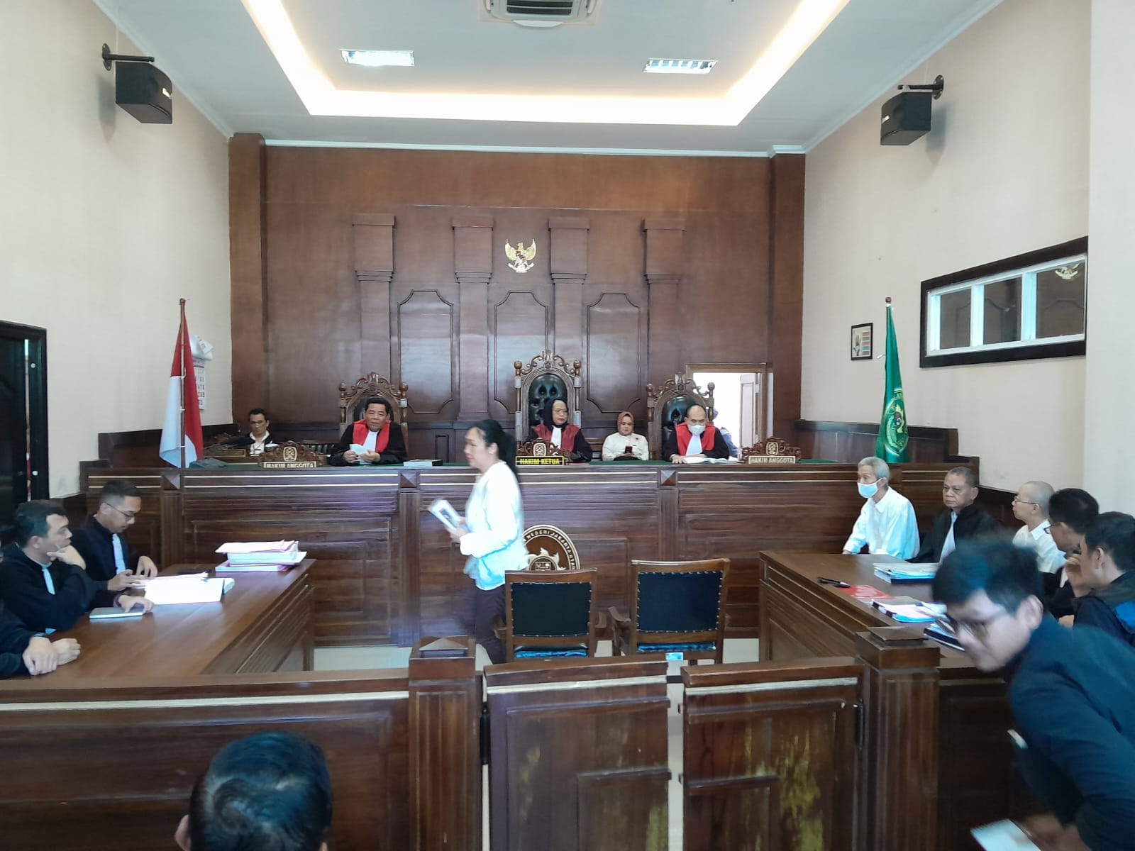Demikian pula, para Terdakwa yang terdiri dari Aky Jauwan, Ernic Jauwan yang masih tinggal di Australia, dan Terdakwa Eva yang merupakan Bisku Perempuan atau Biksuni di Vihara Dharma Suci, Pantai Indah Kapuk (PIK), Jakarta sudah hadir bersama Tim Kuasa Hukumnya.