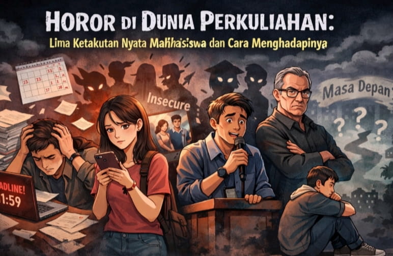 Bagi banyak mahasiswa, dunia perkuliahan kerap terasa seperti “dunia horor” versi modern. Bukan karena hantu atau makhluk gaib, melainkan karena tekanan akademik, tuntutan sosial, dan kecemasan akan masa depan yang datang bersamaan. Kampus menjadi ruang tumbuh, tetapi juga medan uji mental: deadline menumpuk, presentasi mendadak, dosen yang terasa “killer”, hingga rasa takut tertinggal dari teman-teman.