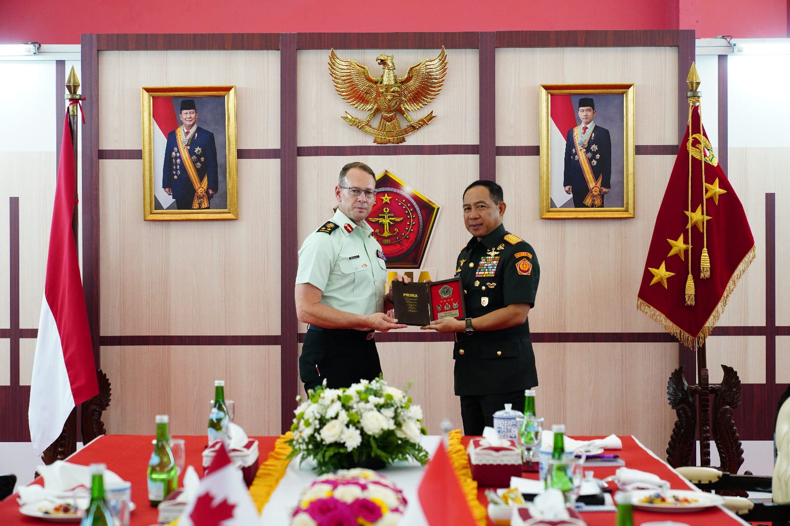 IPNews. Jakarta. Panglima TNI Jenderal TNI Agus Subiyanto menerima Courtesy Call (CC) dari pejabat militer negara sahabat, secara berturut-turut dari Panglima Angkatan Bersenjata Kerajaan Arab Saudi, Air Chief Marshal Fayyad bin Hamed Al-Ruwaili, dilanjutkan dari Iran, Commander of the Iranian Army Ground Forces BG Kyomars Heydari Panghaleh.