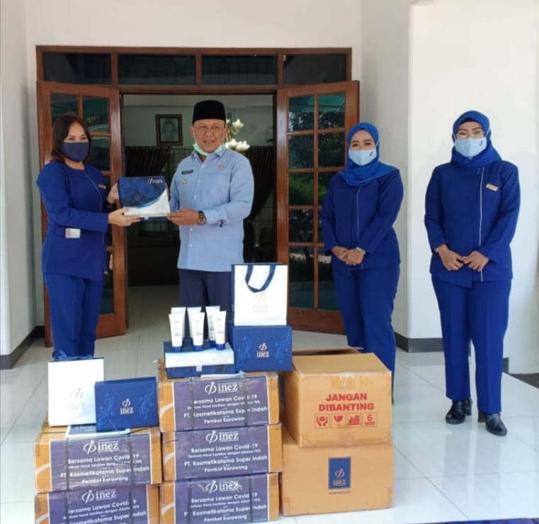 Indoposnews. Karawang, – Untuk kesekian kalinya PT Kosmetikatama Super Indah, perusahaan produk kecantikan Inez Kosmetik memberikan bantuan hand sanitizer di sejumlah daerah di Indonesia. Kali ini bantuan 500 gel hand sanitizer diberikan kepada Pemerintah Kabupaten Karawang.