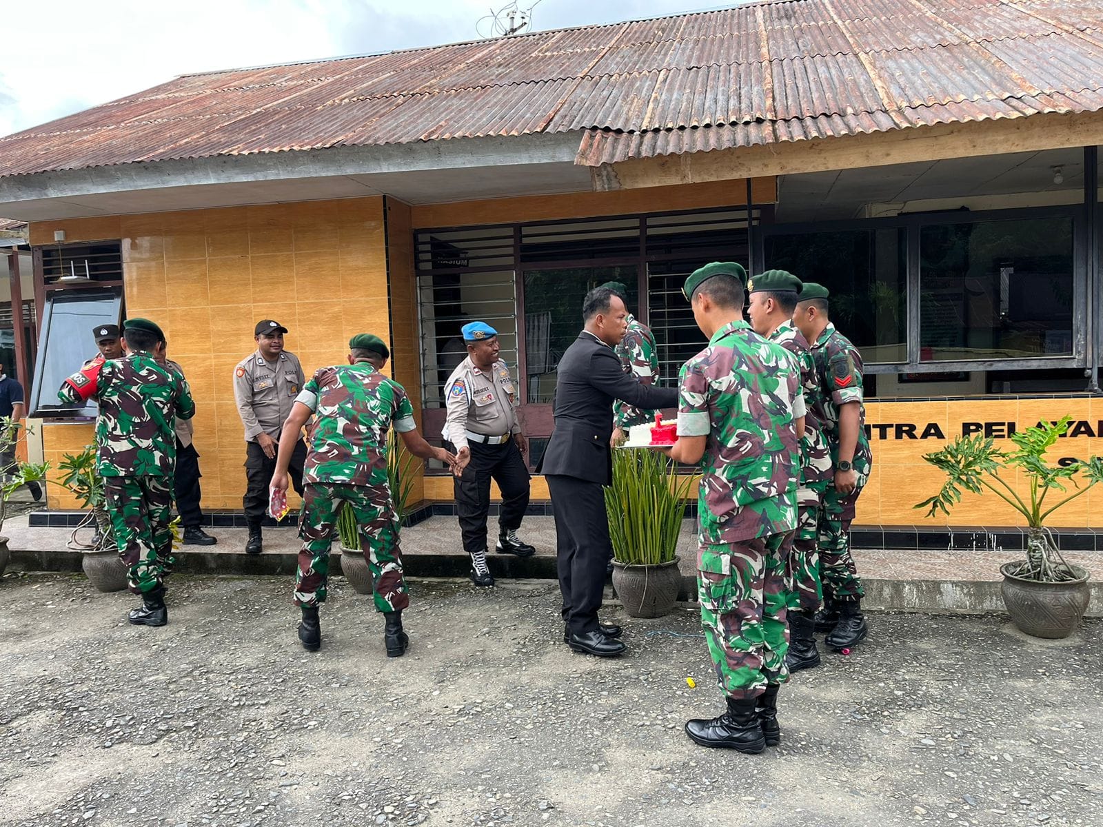 Iptu Aris selaku Kapolsek Kairatu menyampaikan ucapan terima kasih kepada personel Satgas Yonarmed 1 Kostrad atas kejutan yang telah diberikan.