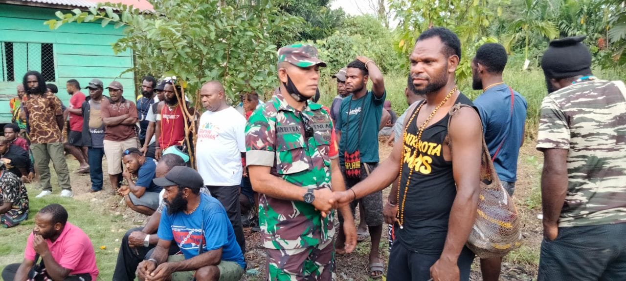 IPNews. Timika. Perkembangan situasi di wilayah Kwamki Narama sempat terganggu karena adanya tindak kriminal yang berpotensi memicu pertikaian antar warga. Mengantisipasi adanya perkembangan situasi, Babinsa Koramil 1710-02/Timika dipimpin Serka Hadi Refra melaksanakan pengamanan sekaligus Komsos dengan masyarakat binaan, Senin (02/01/2023).