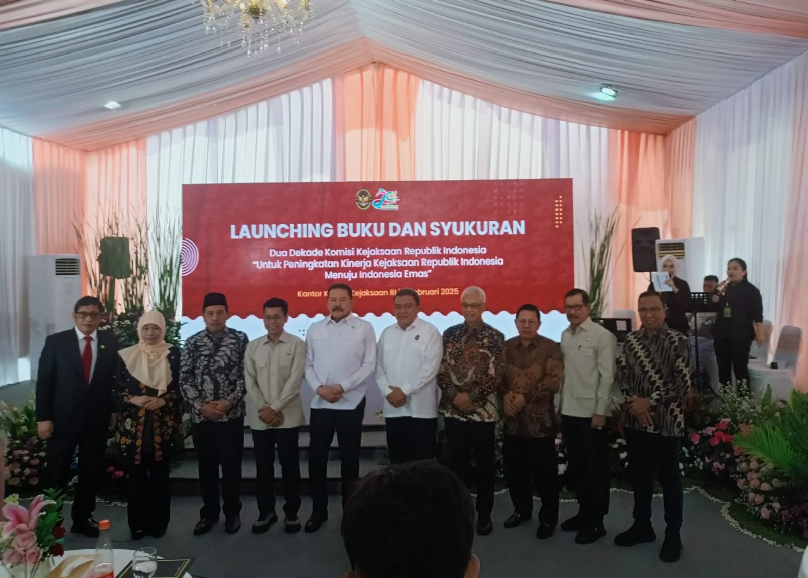 Acara launching buku,” Dua Dekade Komisi Kejaksaan Republik Indonesia Peningkatan Kinerja Kejaksaan Republik Indonesia Menuju Indonesia Emas” bertempat di Kantor halaman Komisi Kejaksaan, Jalan Rumbai, Jakarta Selatan, Selasa (11/2/2025).