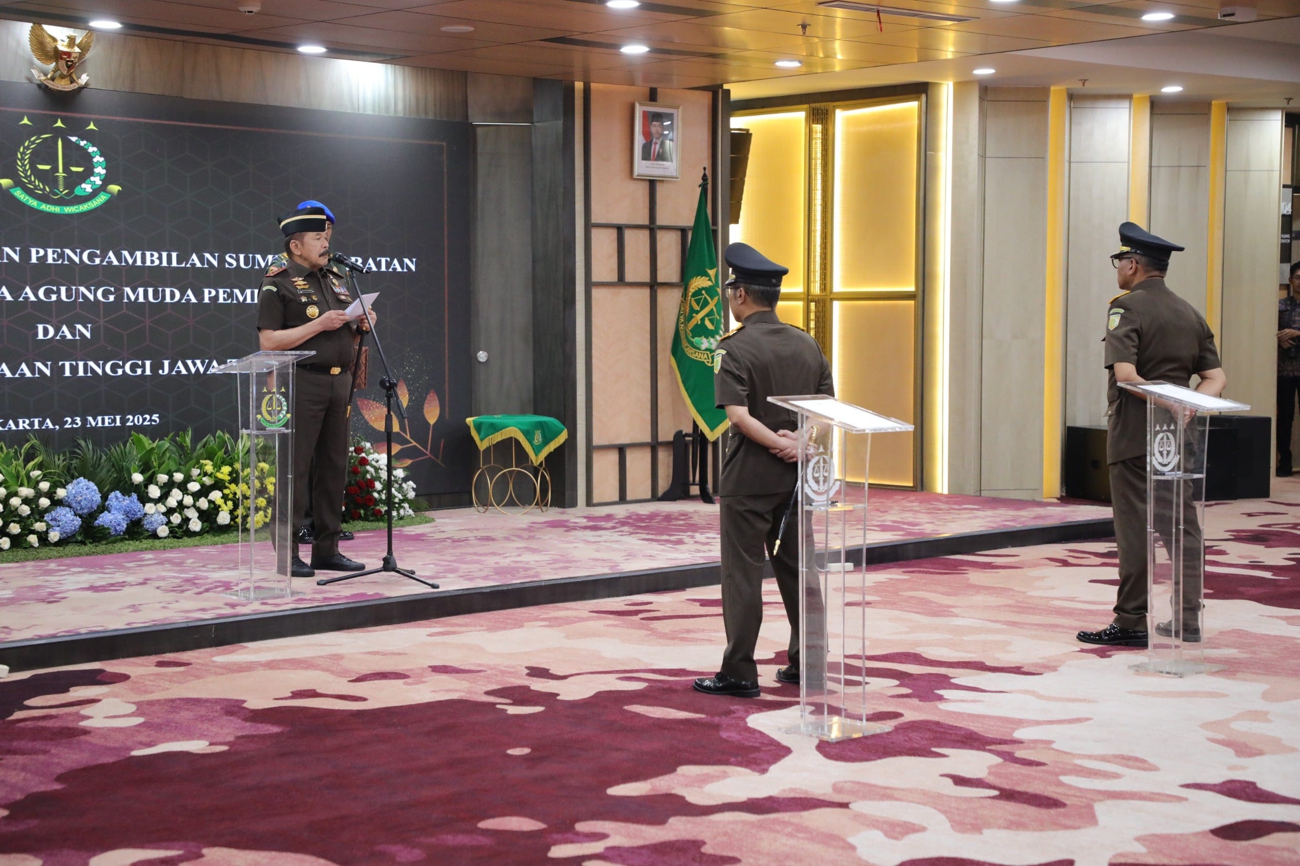 IPNews. Jakarta. Jaksa Agung, Prof. Dr ST Burhanuddin melantik dan mengambil sumpah jabatan Dr. Ponco Hartanto, sebagai Sekretaris Jaksa Agung Muda Pembinaan (Sesjambin) dan Dr. Hendro Dewanto,sebagai Kepala Kejaksaan Tinggi Jawa Tengah (Kajati Jateng), bertempat di Gedung Utama Kejaksaan Agung, Jakarta, Jumat (23/5/2025).