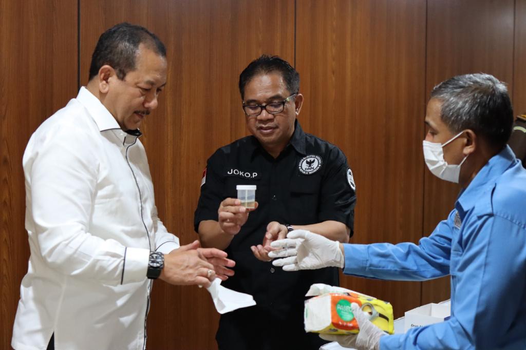 Dia menyampaikan bahwa pelaksanaan tes urine narkotika yang diikuti oleh 490 orang pegawai dilingkungan Jambin Kejagung.