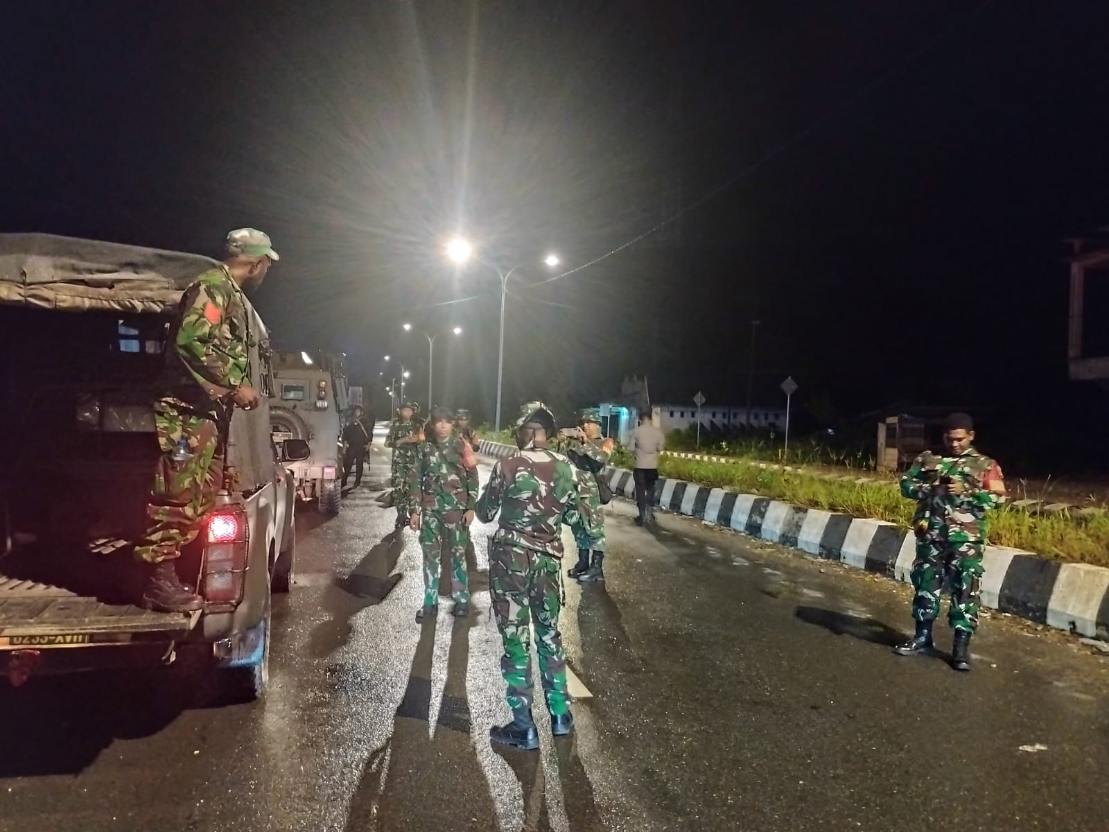 IPNews. Timika. Guna mengantisipasi kalender Kamtibmas jelang 1 Juli yang merupakan kalender tahunan untuk wilayah Papua, personel Kodim 1710/Mimika bersama Polres Mimika menggelar Patroli Gabungan TNI-Polri di seputaran Kota Timika sampai dengan dini hari, Selasa (1/7/2025).
