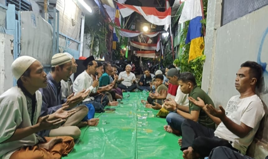 IPNews. Jakarta. Menjelang Hari Ulang Tahun (HUT) Kemerdekaan RI Ke-77 tahun 2022, Warga RT 03, RW 02 Kelurahan Keagungan, Tamansari Jakarta Barat, Laksanakan Doa dan Tahlil bersama yang dipimpin Bagas Abdul Rahman seorang anggota karang taruna dan sekaligus Mahasiswa dari Universitas Al Azhar Jakarta Selatan. “Bagas juga aktif di kemasyarakatan yaitu PCNU Jakbar.