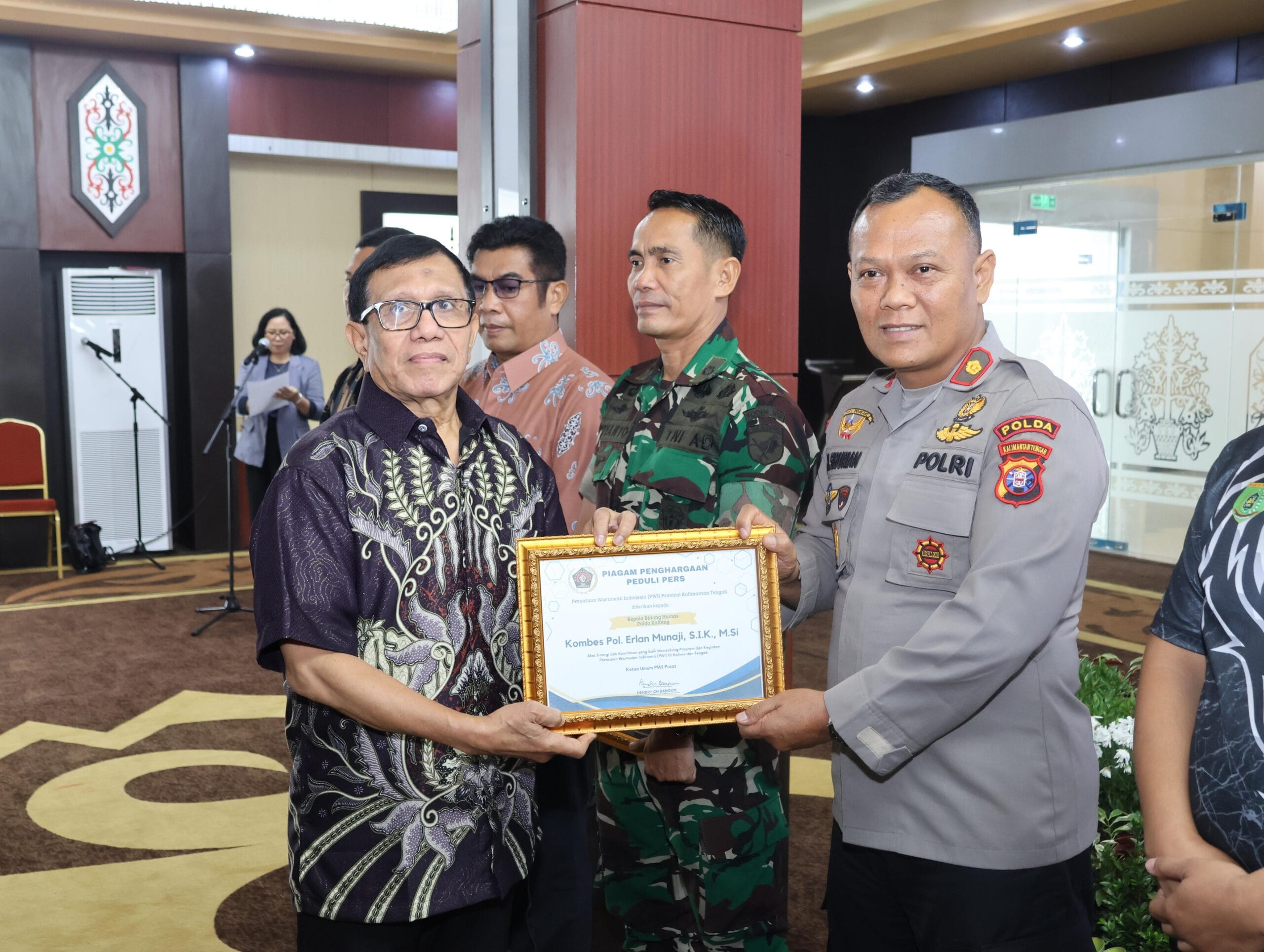 IPNews. Palangka Raya. Satu pejabat utama Polda Kalimantan Tengah (Kalteng) beserta lima Kapolres jajaran menerima penghargaan dari Persatuan Wartawan Indonesia (PWI) Kaimantan Tengah (Kalteng), Sabtu (13/7/2024) siang.