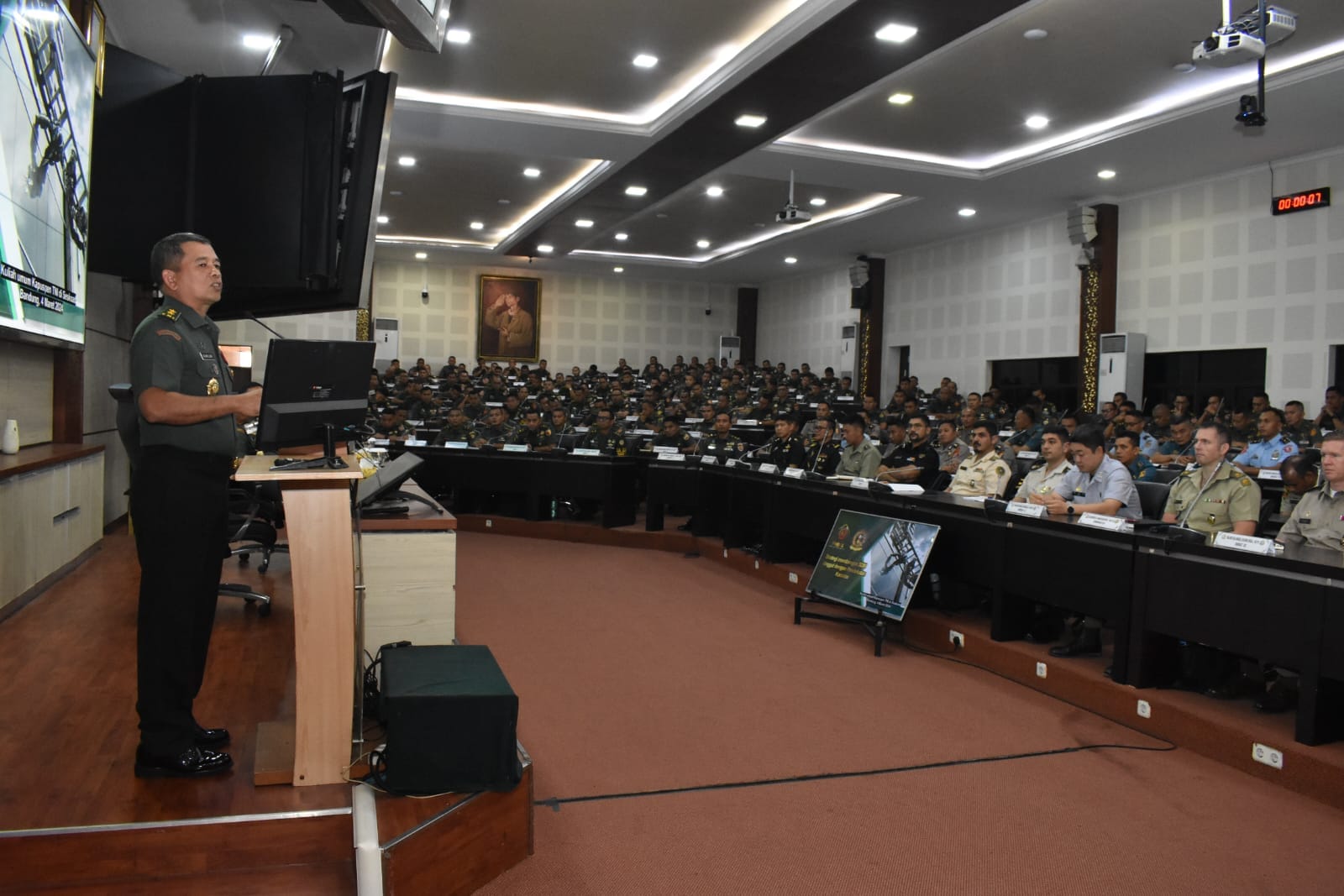 IPNews. Jakarta. Kepala Pusat Penerangan (Kapuspen) TNI Mayor Jenderal TNI Dr. R. Nugraha Gumilar, M.Sc. hadir sebagai narasumber dalam rangka memberikan kuliah umum kepada Perwira Siswa (Pasis) Pendidikan Reguler (Dikreg) LXIV Seskoad TA 2024 bertempat di Gedung Gatot Subroto Seskoad, Bandung, Jawa Barat, Senin (4/3/2024).