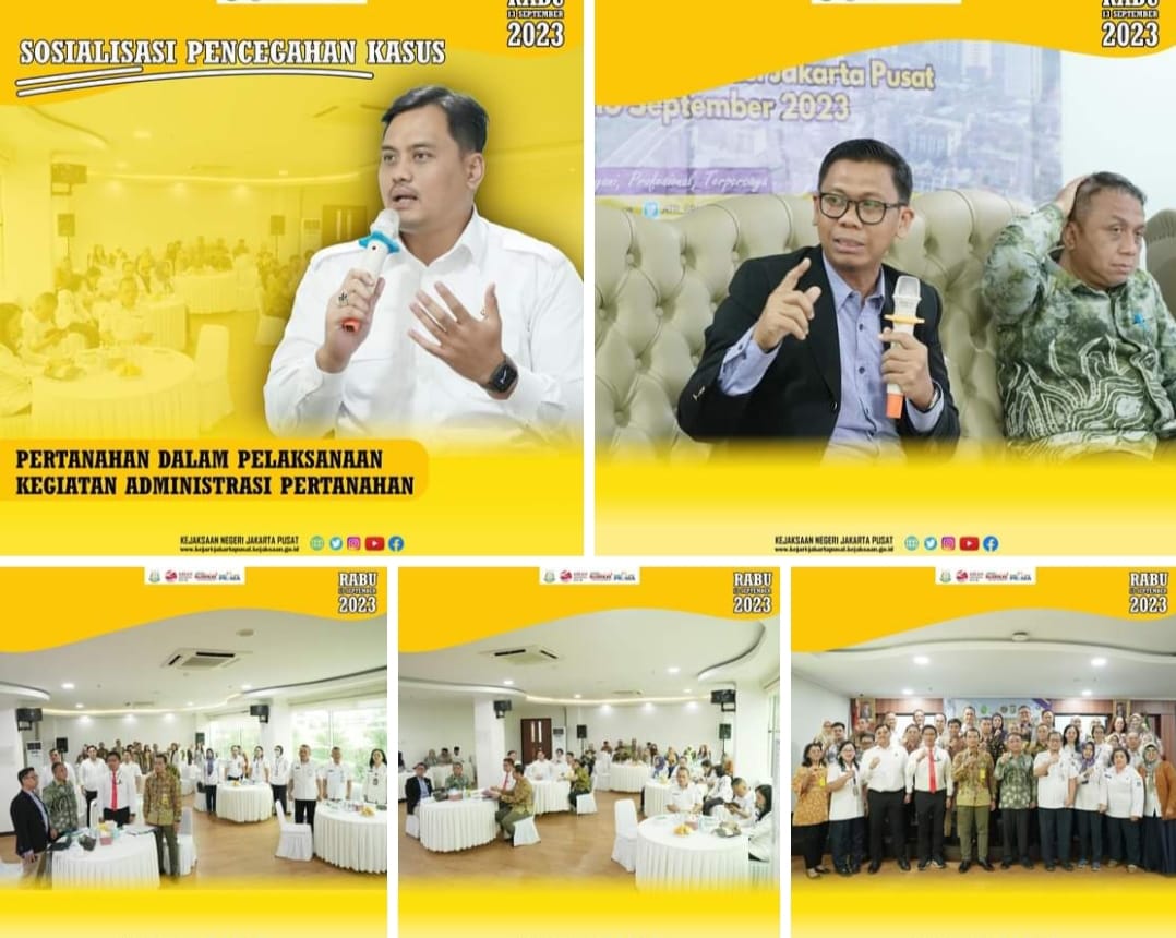 IPNews. Jakarta. Kepala Seksi Perdata dan Tata Usaha Negara Kejaksaan Negeri Jakarta Pusat (Kasi Datun Kejari Jakpus) Agung Irawan menjadi narasumber dalam kegiatan sosialisasi penerangan hukum pencegahan kasus pertanahan tahun 2023, bertempat di kantor Pertanahan Kota Administrasi Jakpus, Rabu (13/9/2023).