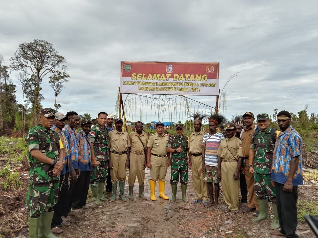 IPNews. Merauke. Tim Pengawasan dan Evaluasi TMMD Ke-113 Tahun 2022 yang dipimpin langsung oleh Brigjen TNI Yusman Madayun didampingi Kepala Seksi Teritorial Korem 174/ATW Merauke Kolonel Infanteri Ganiahardi beserta rombongan melaksanakan peninjauan lokasi TMMD Ke-113 di wilayah Kodim 1707/Merauke di Kampung Vyer Distrik Ti Zain Kabupaten Mappi Papua.