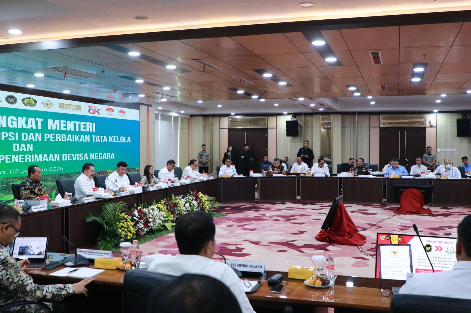 IPNews. Jakarta. Kejaksaan Agung (Kejagung) selaku Ketua Desk menyelenggarakan Rapat Tingkat Menteri terkait Desk Koordinasi Pencegahan Korupsi, Perbaikan Tata Kelola dan Desk Koordinasi Peningkatan Penerimaan Devisa Negara, bertempat di Gedung Utama Kejagung, Jakarta, Kamis (2/1/2025)