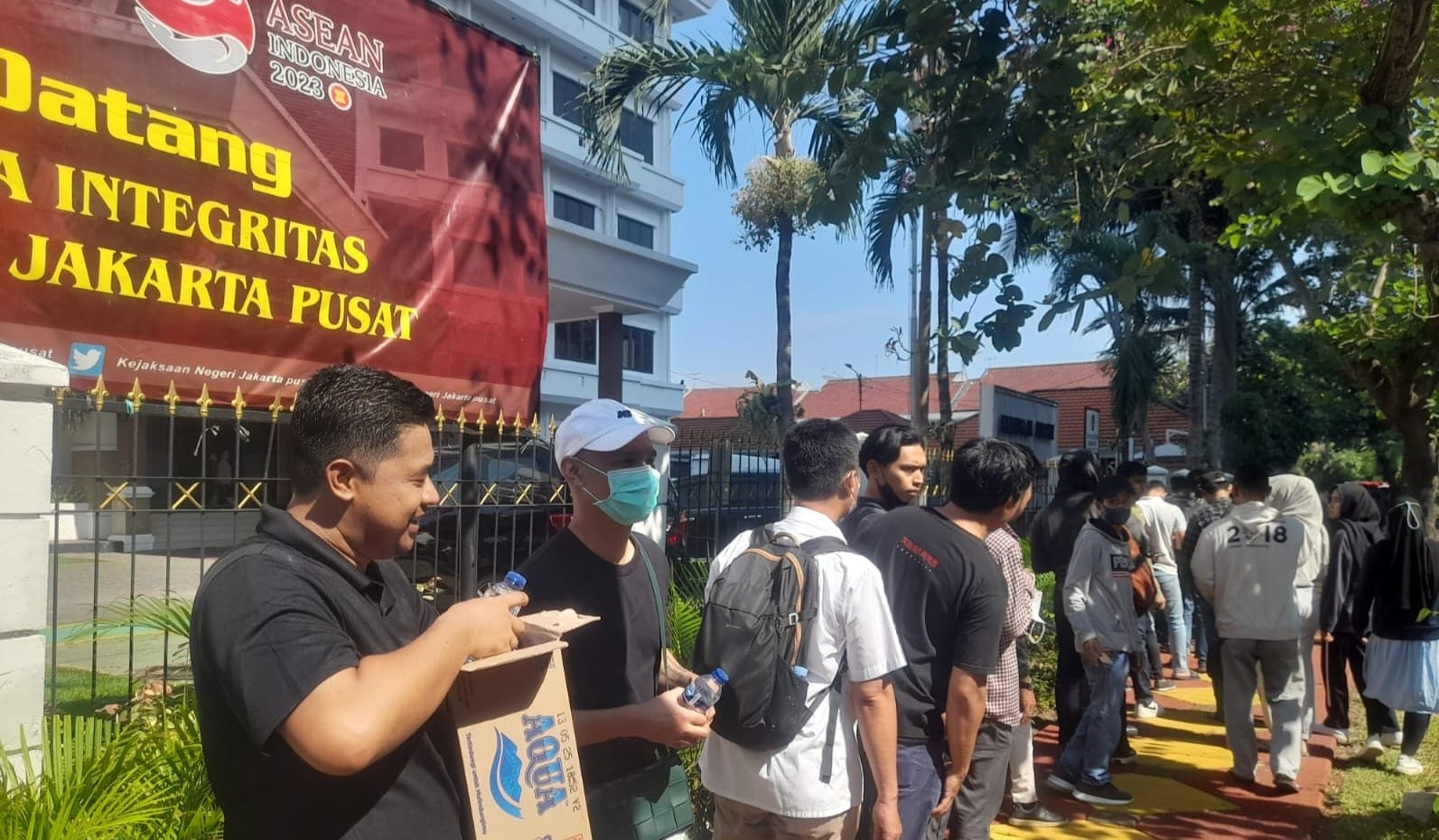 Tak hanya itu, Kejaksaan Negeri Jakarta Pusat memberikan sebotol air mineral kepada masyarakat yang mengantre di Jumat berkah. (9/6/2023).